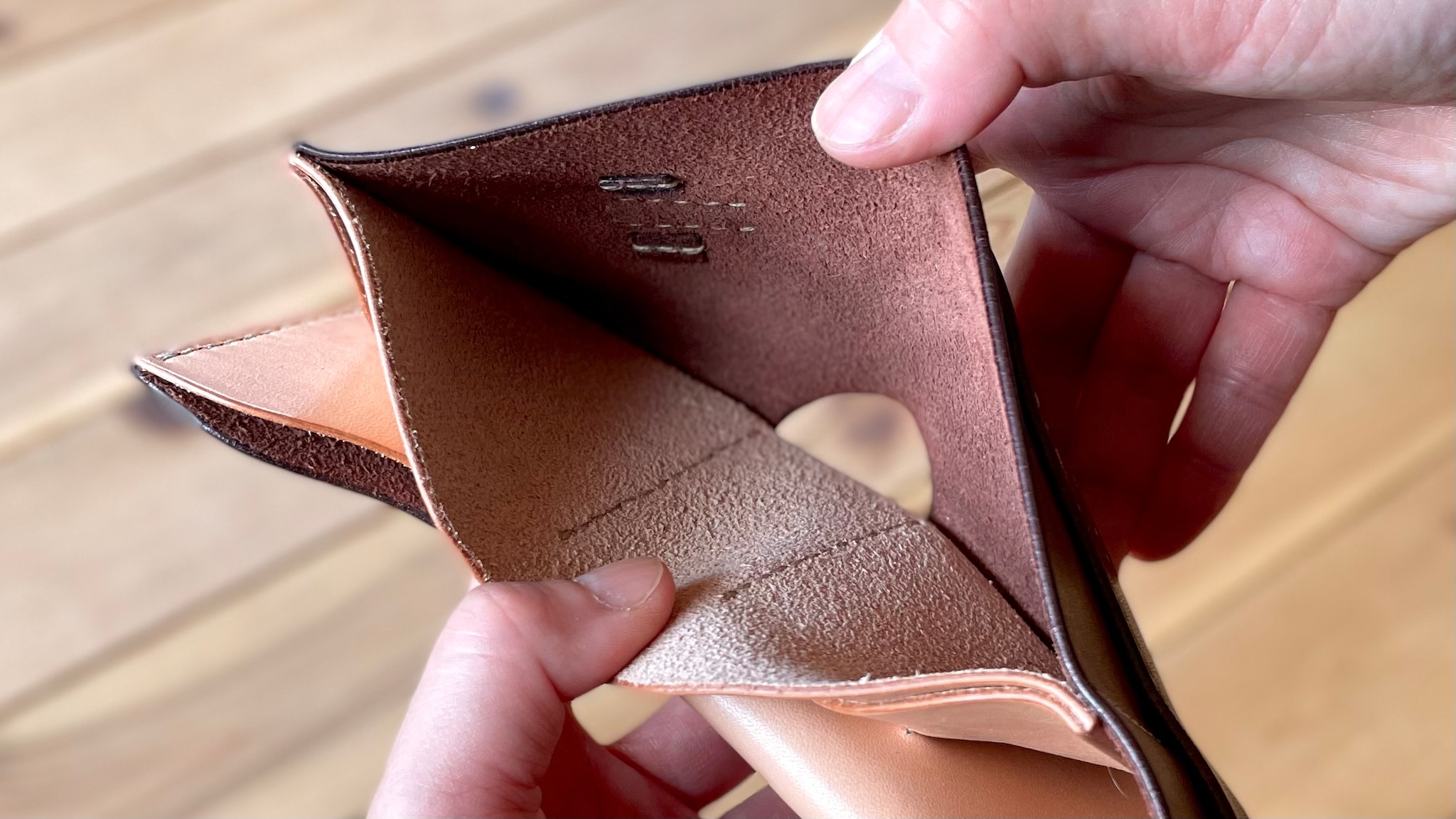 革の繊維を丹念に磨いて引き締め、型崩れしにくい丈夫なコバに。思わず撫でたくなる滑らかさは、手に取った人だけが知る革のもう一つの表情です。