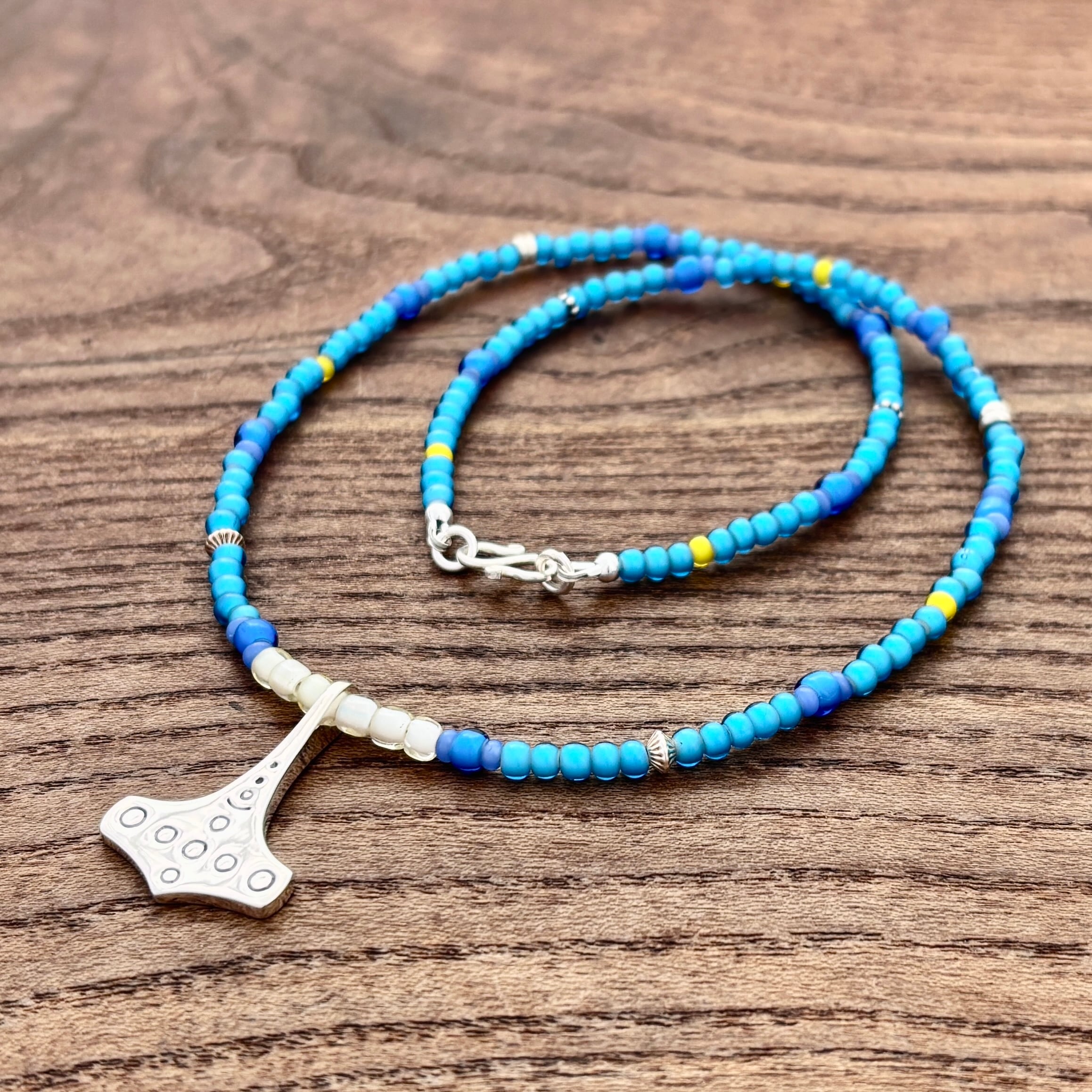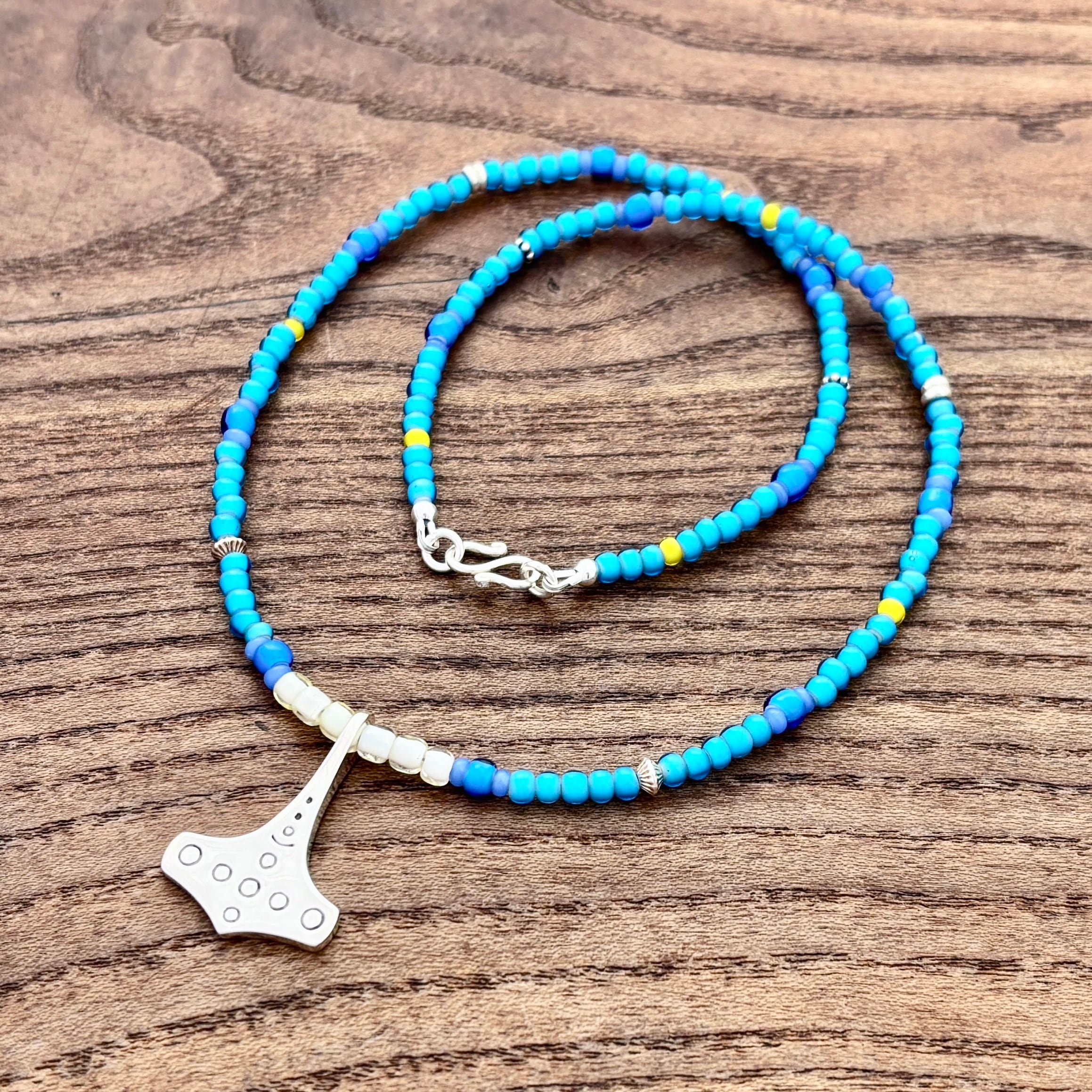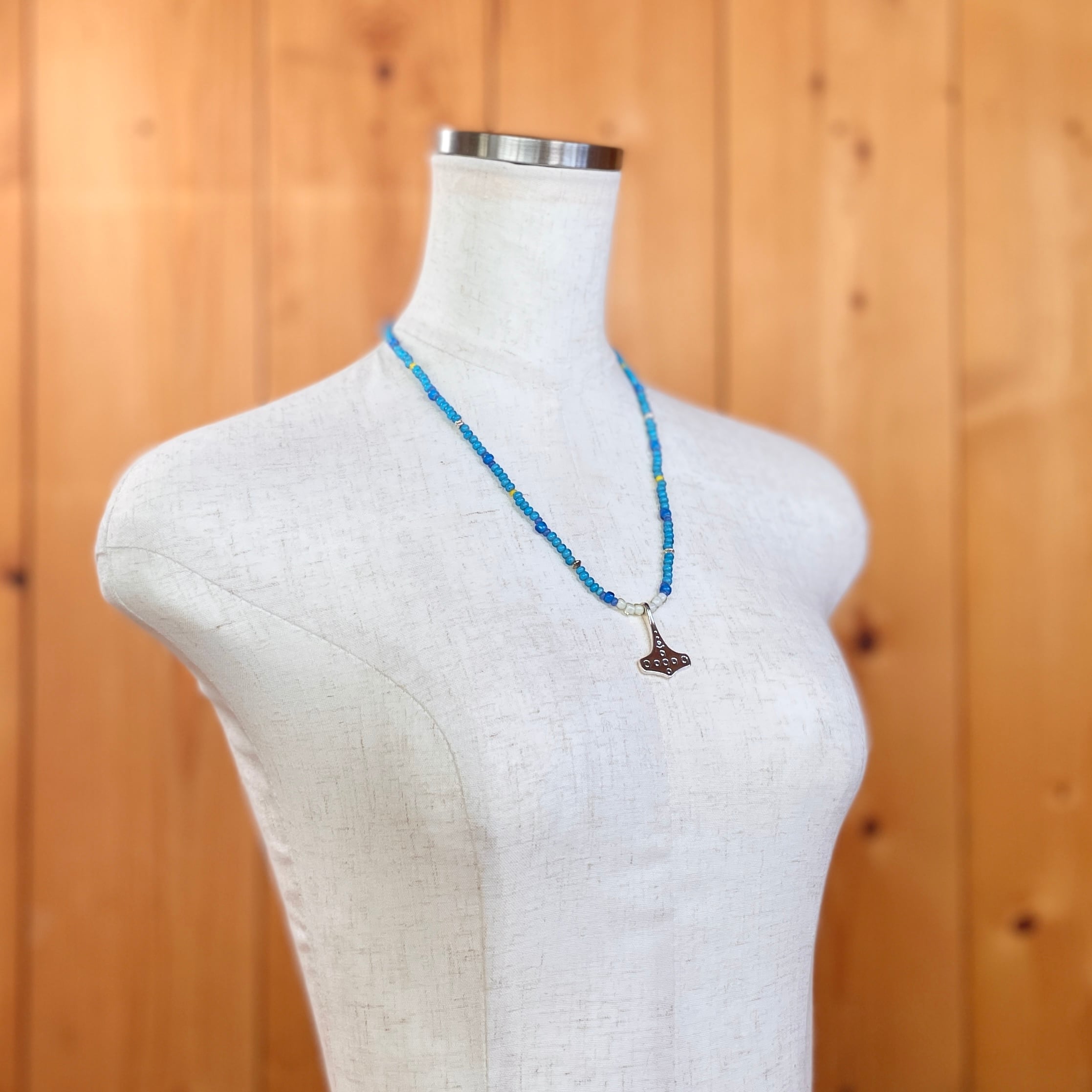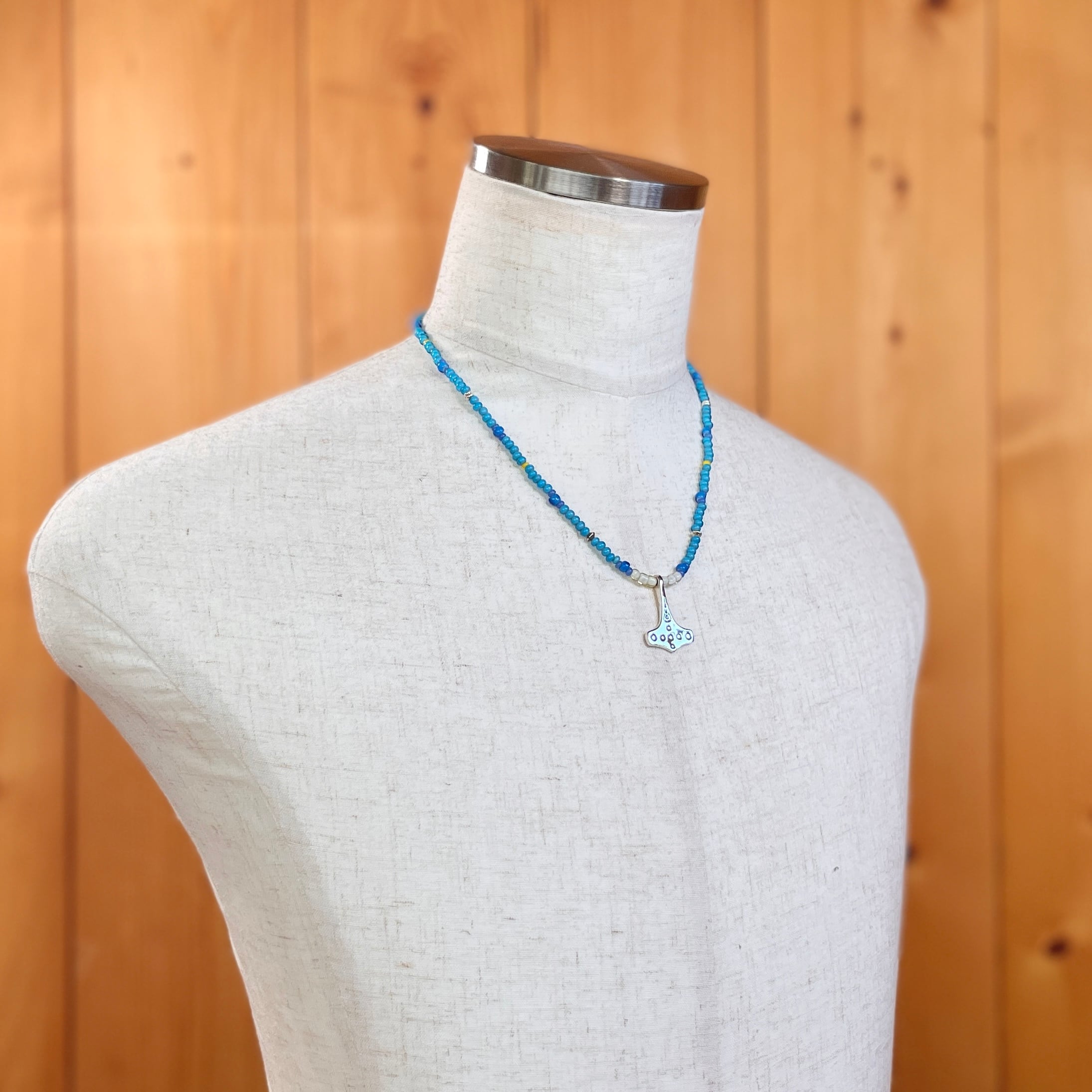 ヴァイキング トールハンマー ミョルニル ネックレス[シルバー925][19-20世紀 チェコ イタリア インド アンティークビーズ]Viking Thor's Hammer Mjöllnir Necklace[Sterling Silver]/北欧 アクセサリー Jewelry