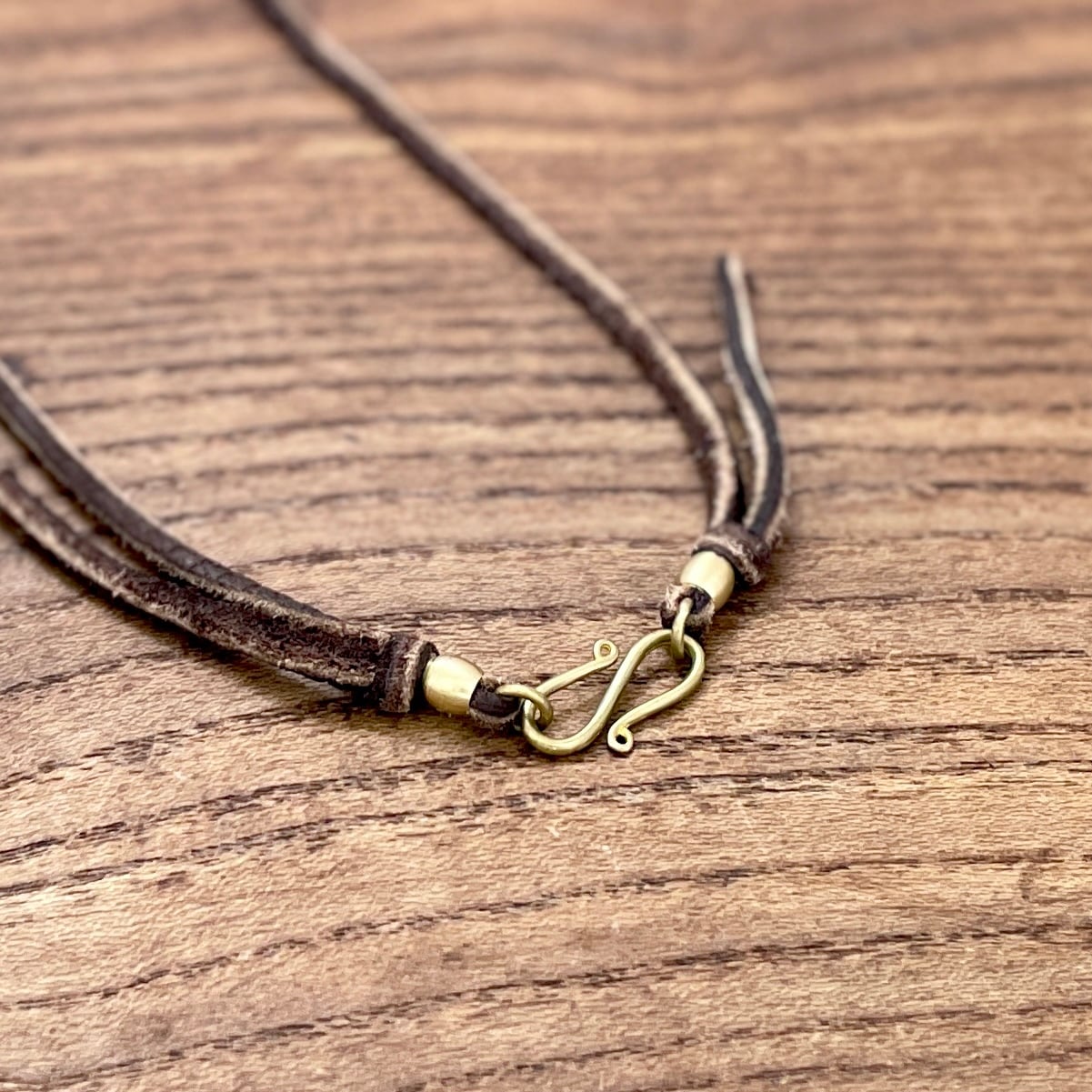 アンティークビーズと鹿革紐でナチュラルな風合いのネックレスに仕上げました。