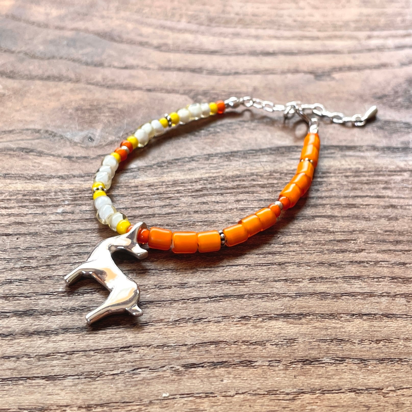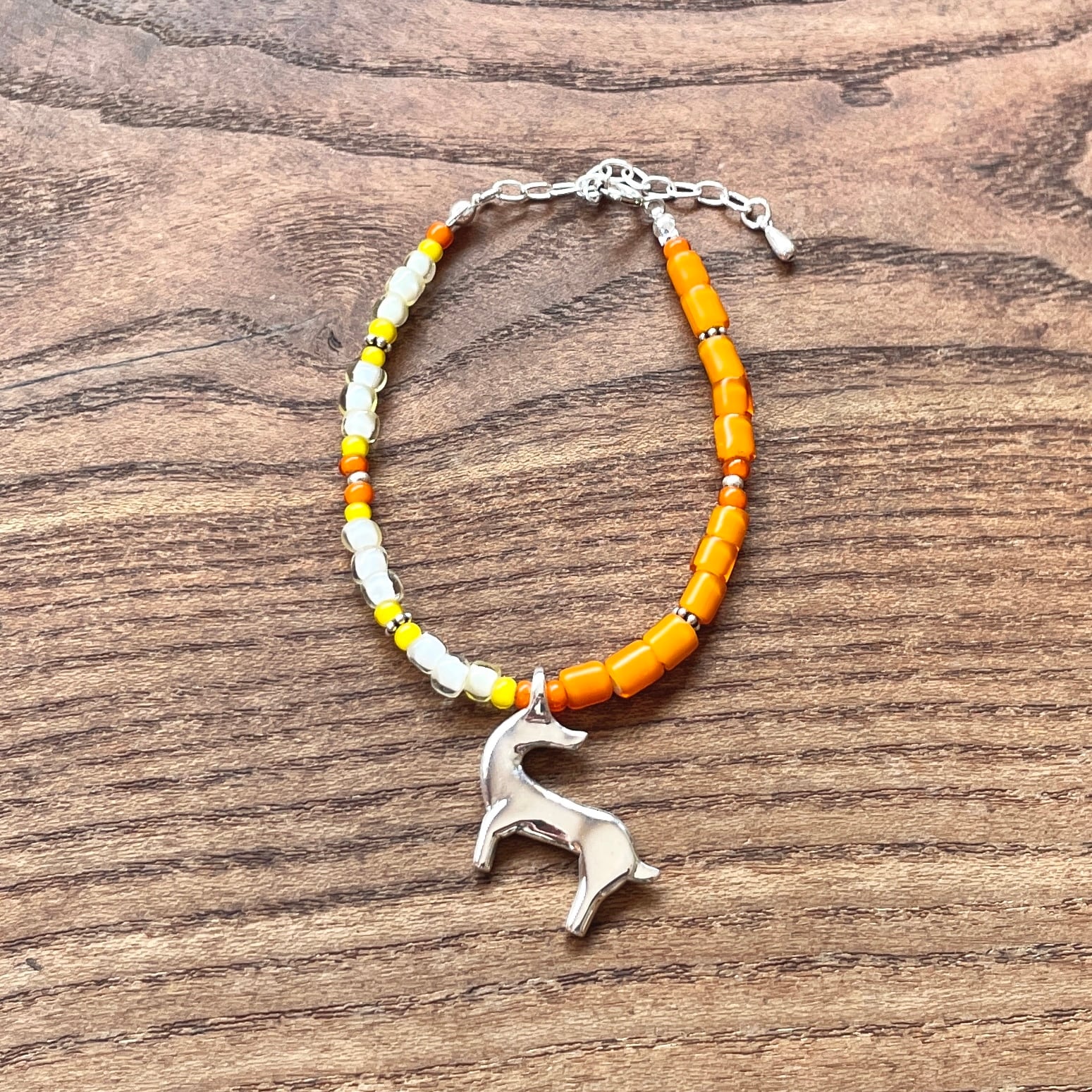 1000年前のヴァイキングデザインをもとにしたトナカイのブレスレット。シルバー925のトップに小粒なアンティークビーズを組み合わせ、シンプルな装いに映える細身のブレスレットに仕上げました。