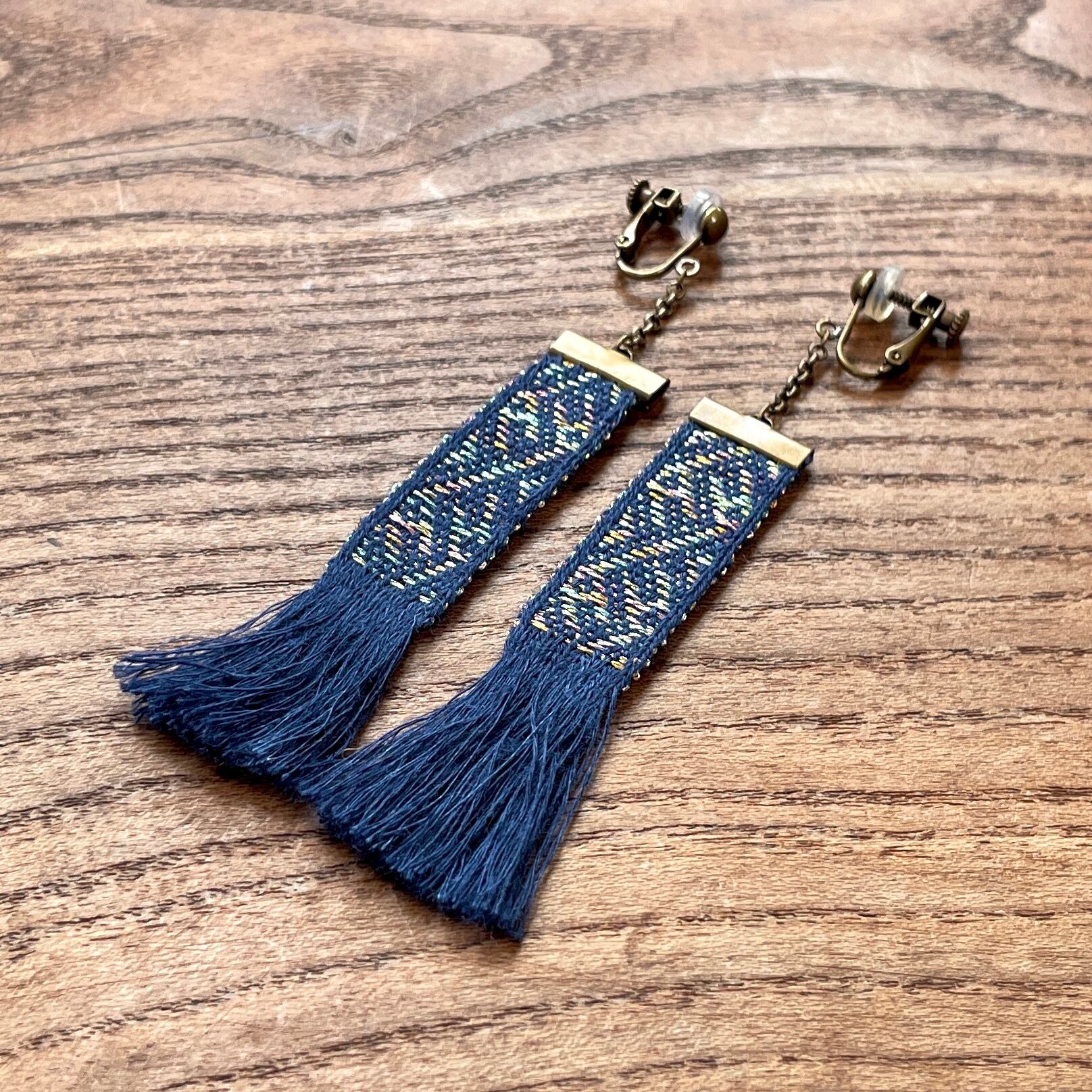 イヤリング Dublin Dragon[虹色糸 織り込み]#ac1-4/手織り アクセサリー ヴァイキング Viking