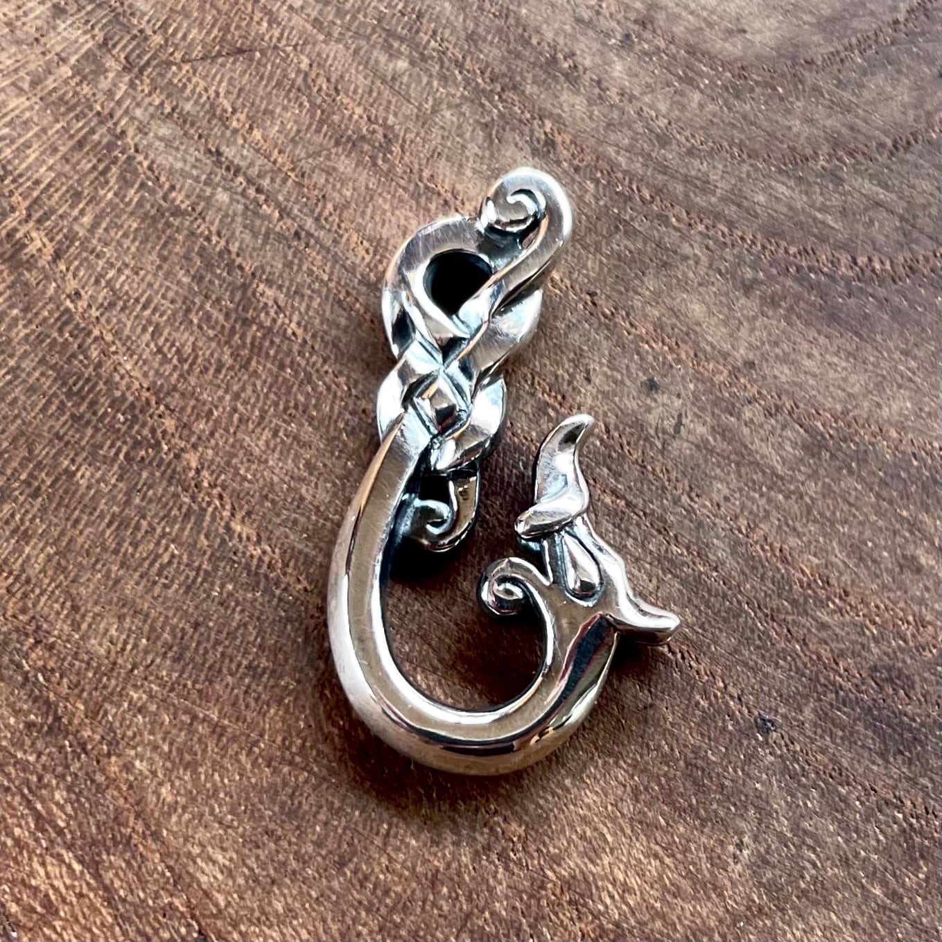 1000年前のヴァイキングデザインをもとにしたドラゴンのペンダント。表裏どちらも立体的に造形しています。
