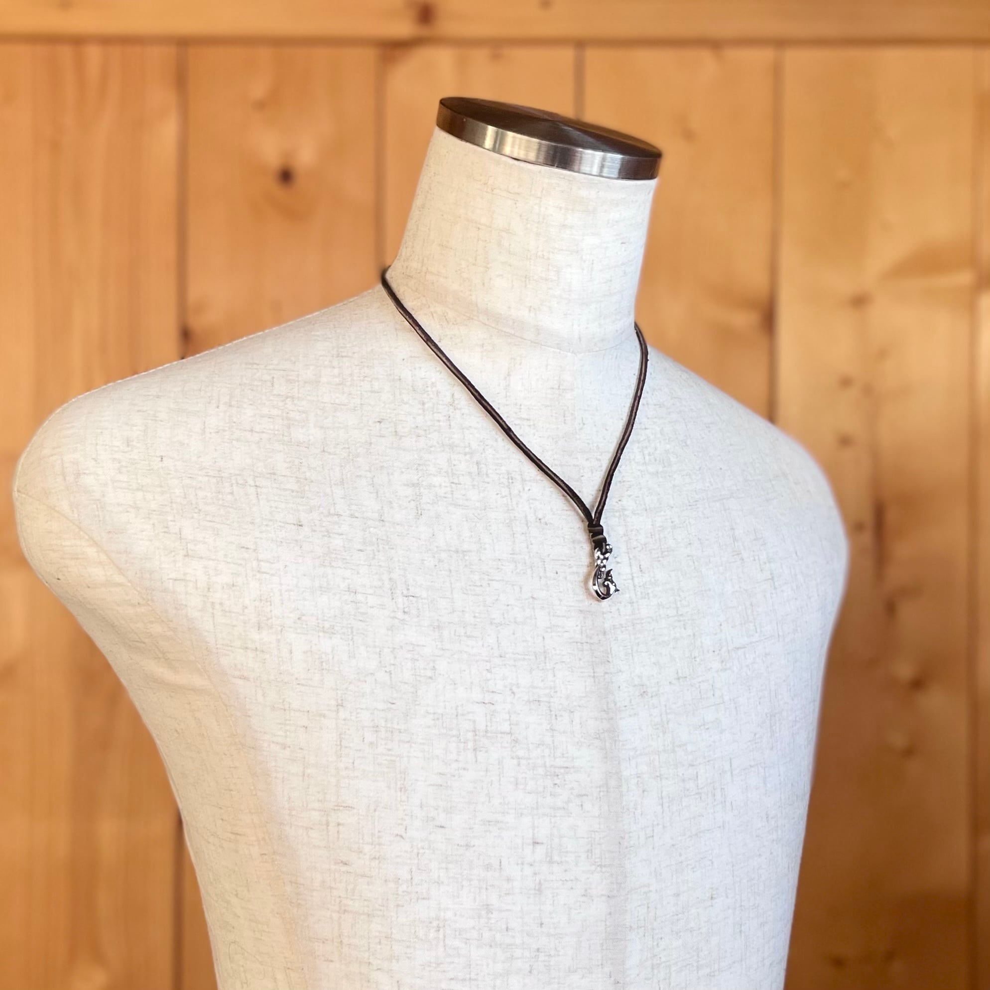 トップとビーズはシルバー925、革紐は長く使える鹿革を使用。鹿革は武具にも用いられてきた耐久性のある革です。首後ろでビーズの位置を調整し、お好みの長さで着用できます。