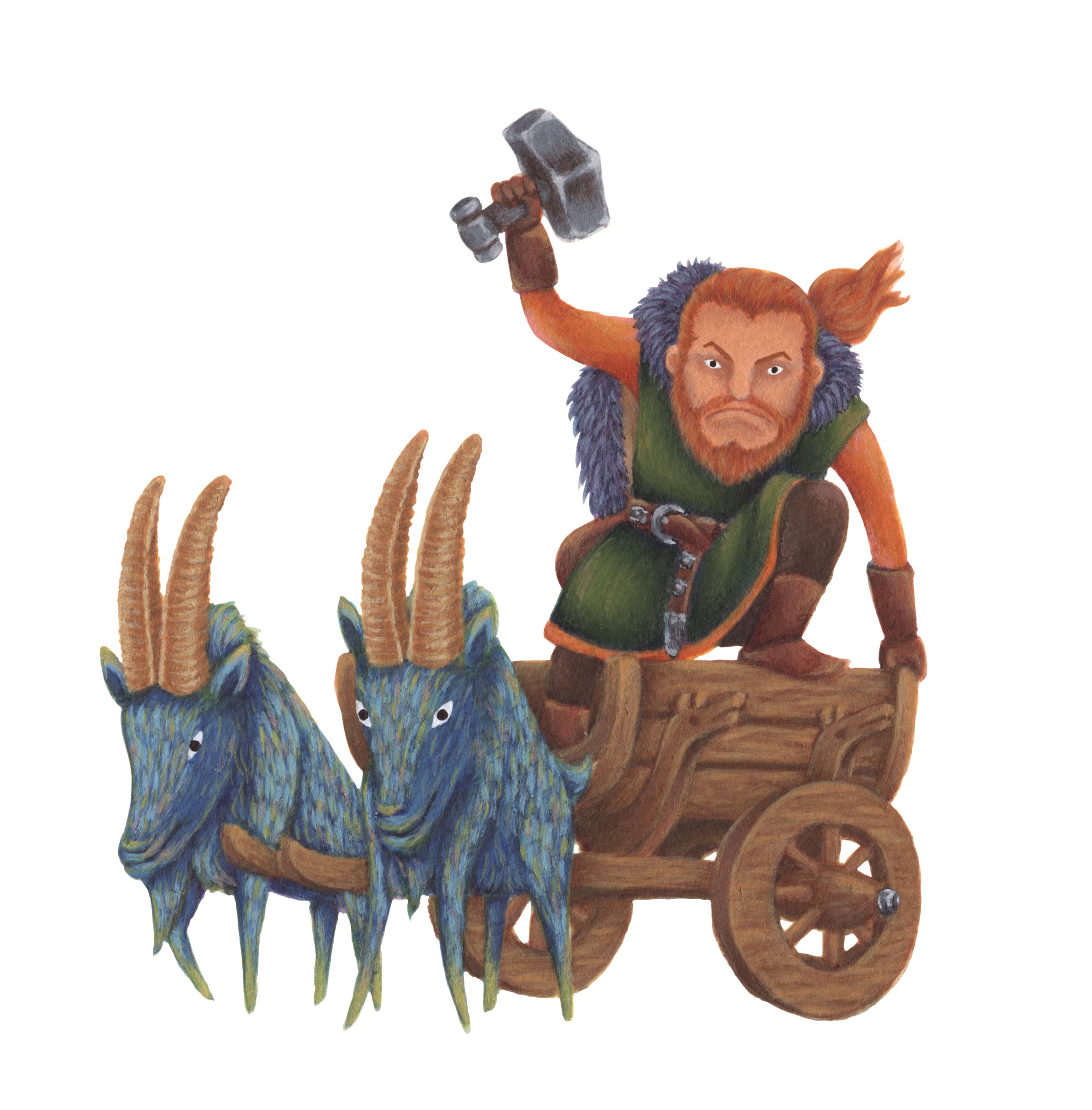タングニョーストとタングリスニルは、車を引いて空を駆けてトールと共に旅をする山羊。かつては収穫の最後に束ねられた穀物には特別な力が宿ると考えられ、それを使って山羊を作り翌年の豊作を祈願していたようです。