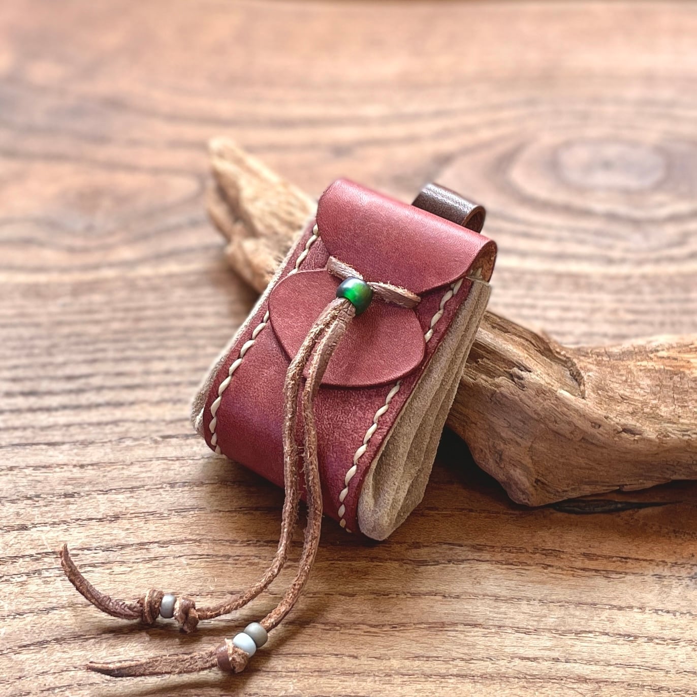 ミニポーチ 手染め[フレイムレッド]/本革 レザー ヴァイキング 北欧 Leather Viking