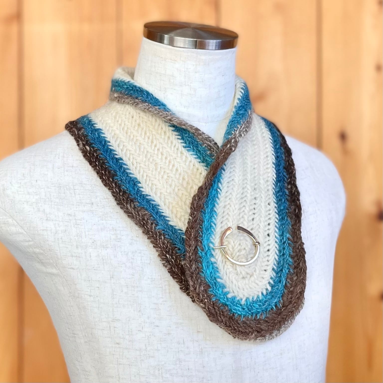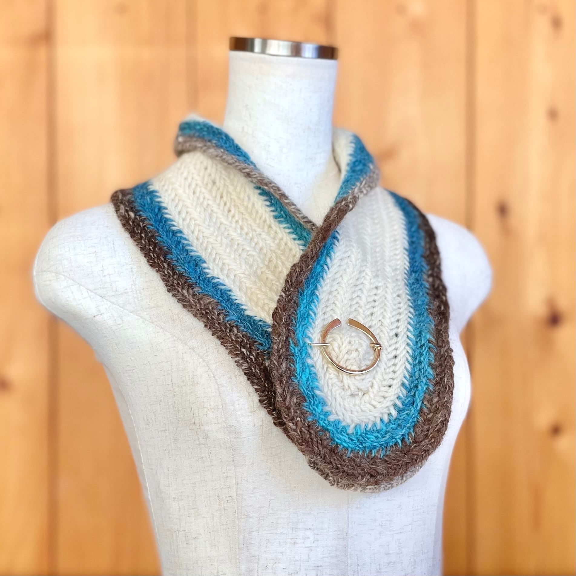 ヴァイキング ノールビンドニング マフラー & 真鍮ブローチ[ウール 100%]Viking Nålbindning Scarf with Brooch[Wool 100%]/手編み 北欧